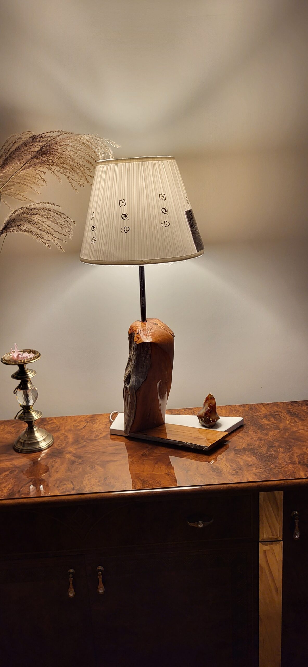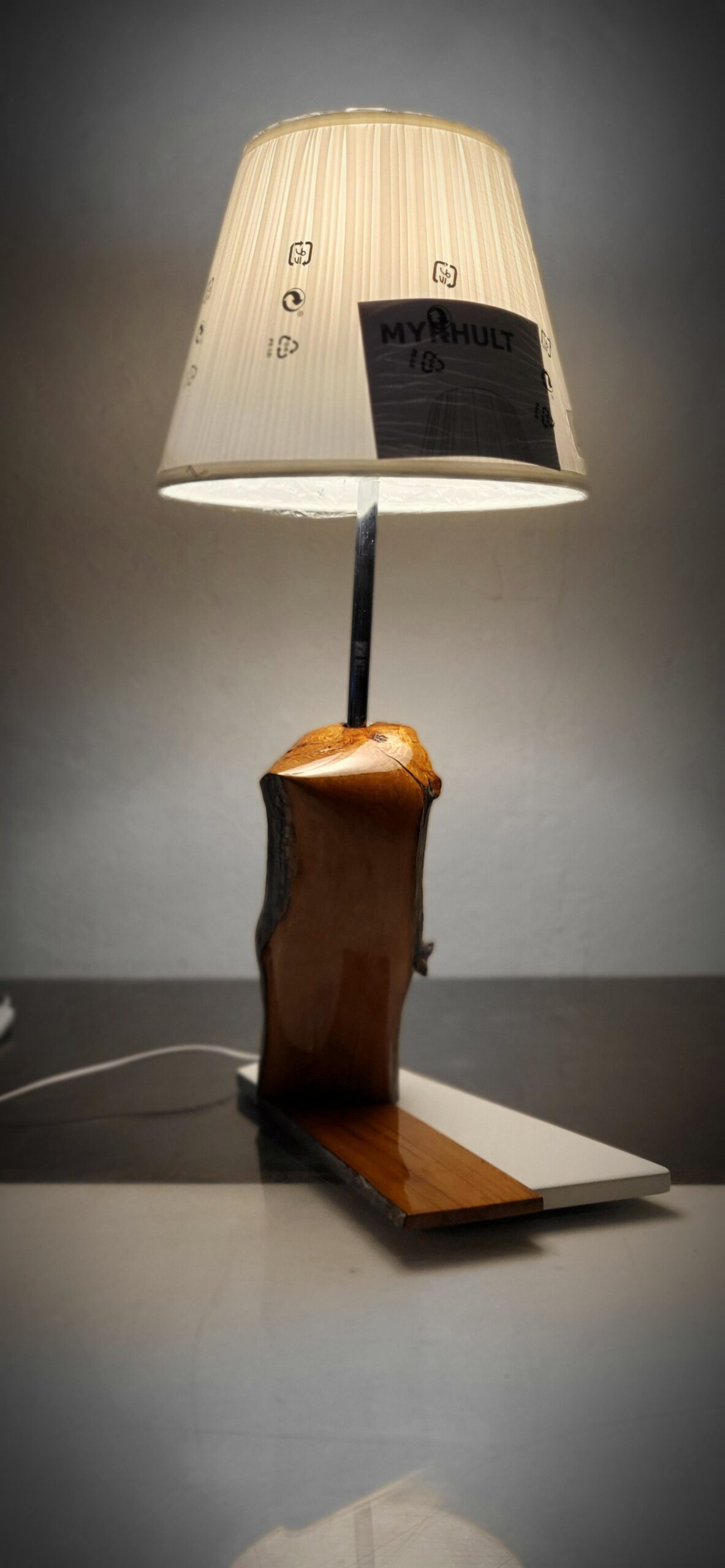 Lempos medinė dalis padaryta iš ąžuolo masyvo, kurio viena dalis nušlifuota ir nulakuota
