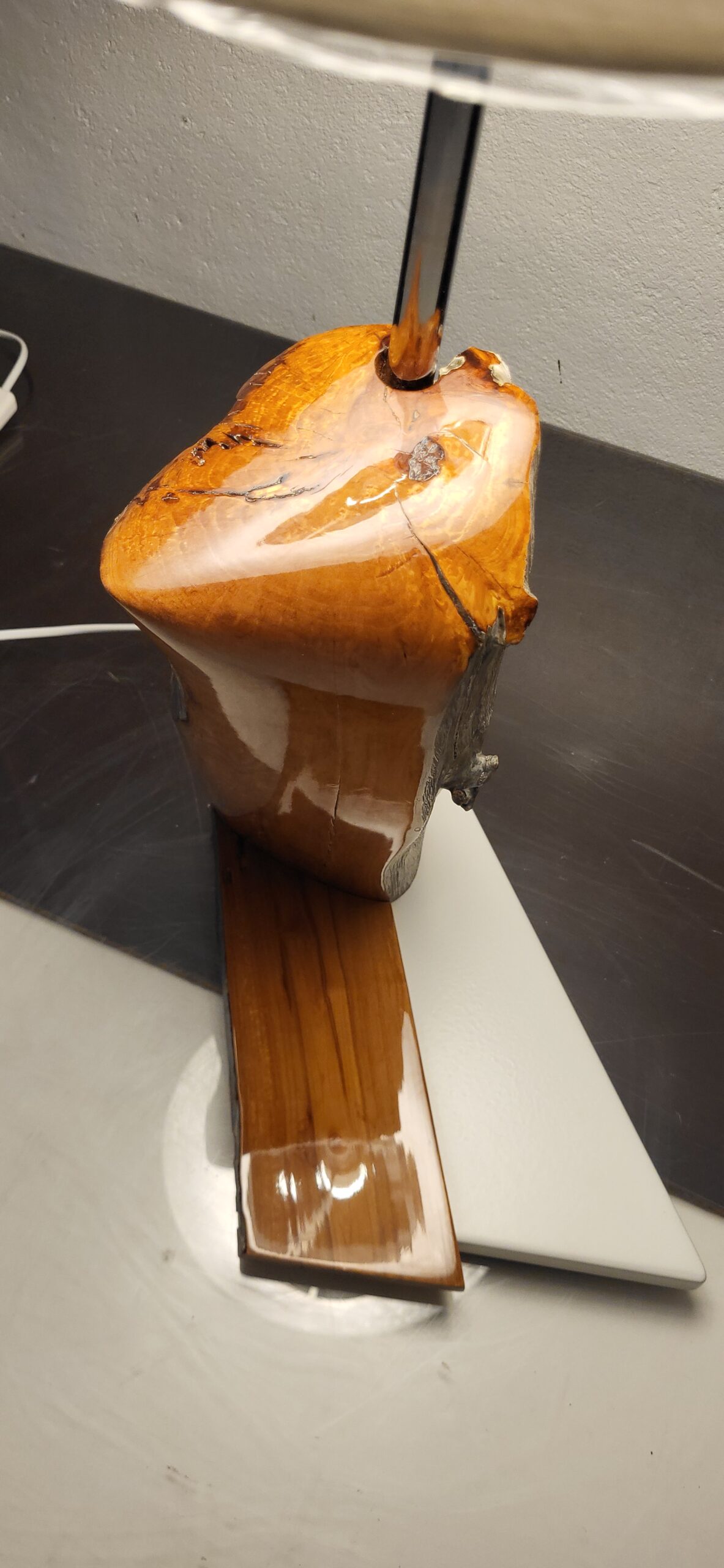 jachtiniu laku, o po to nupoliruota, o kita dalis palikta autentiška. Postamentas pagamintas iš