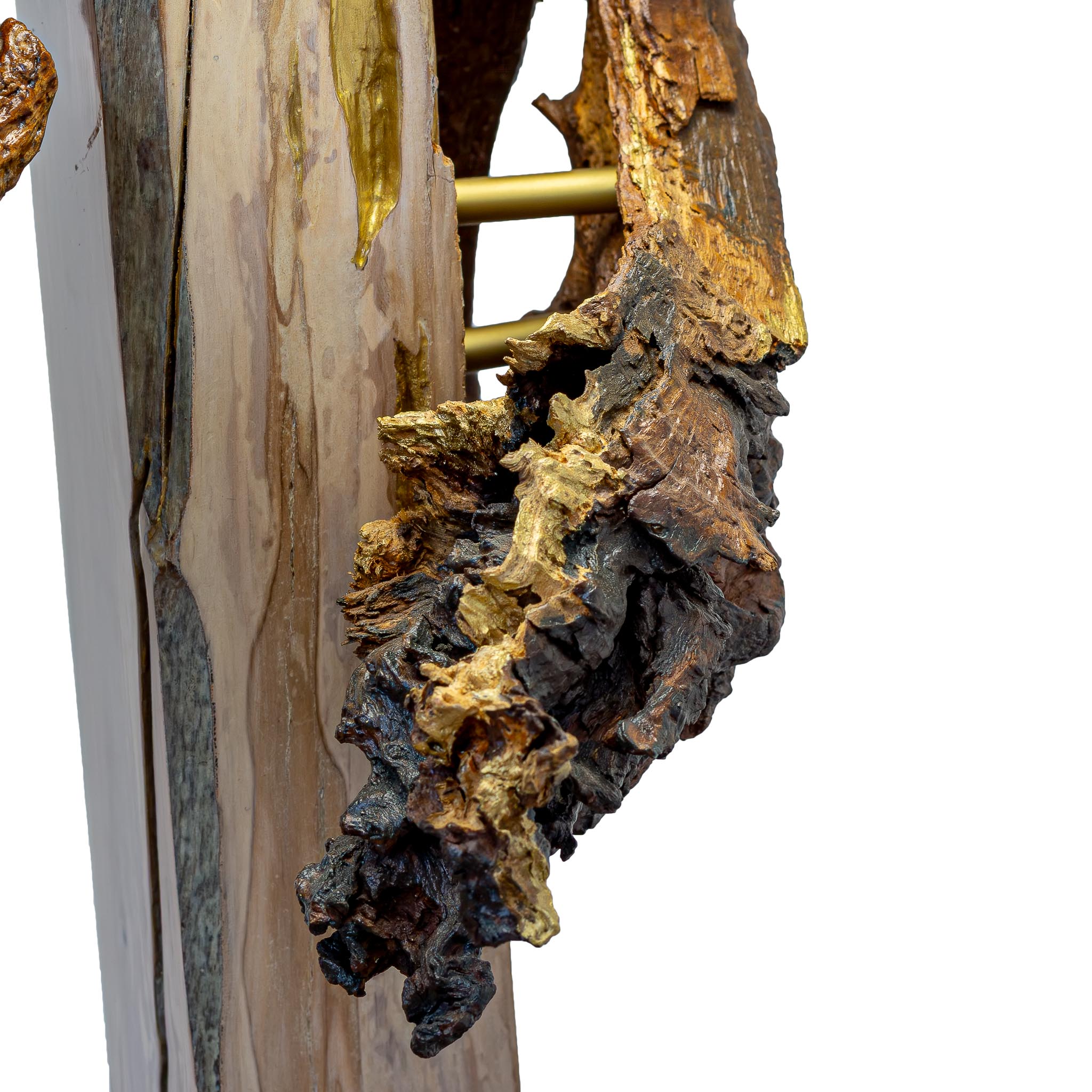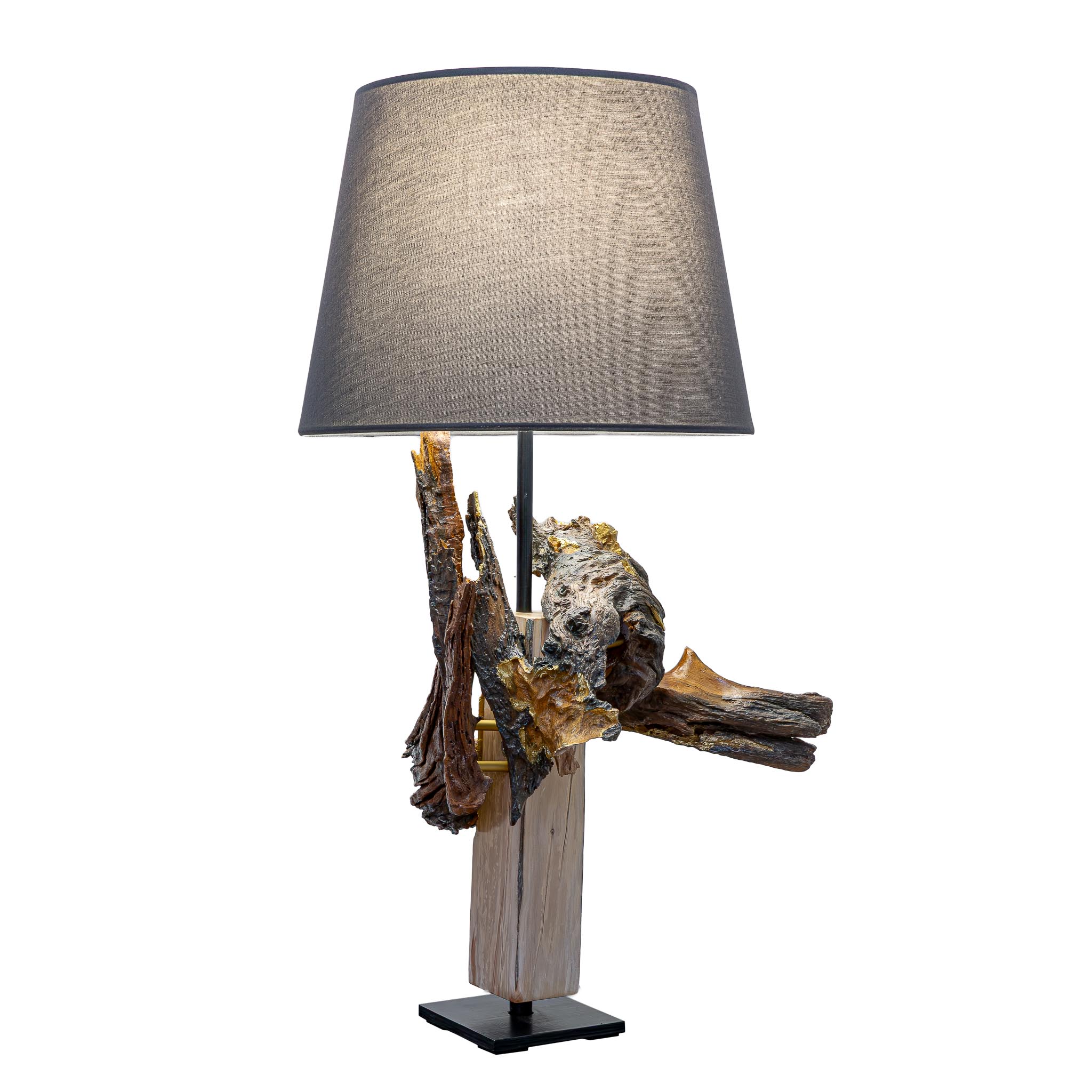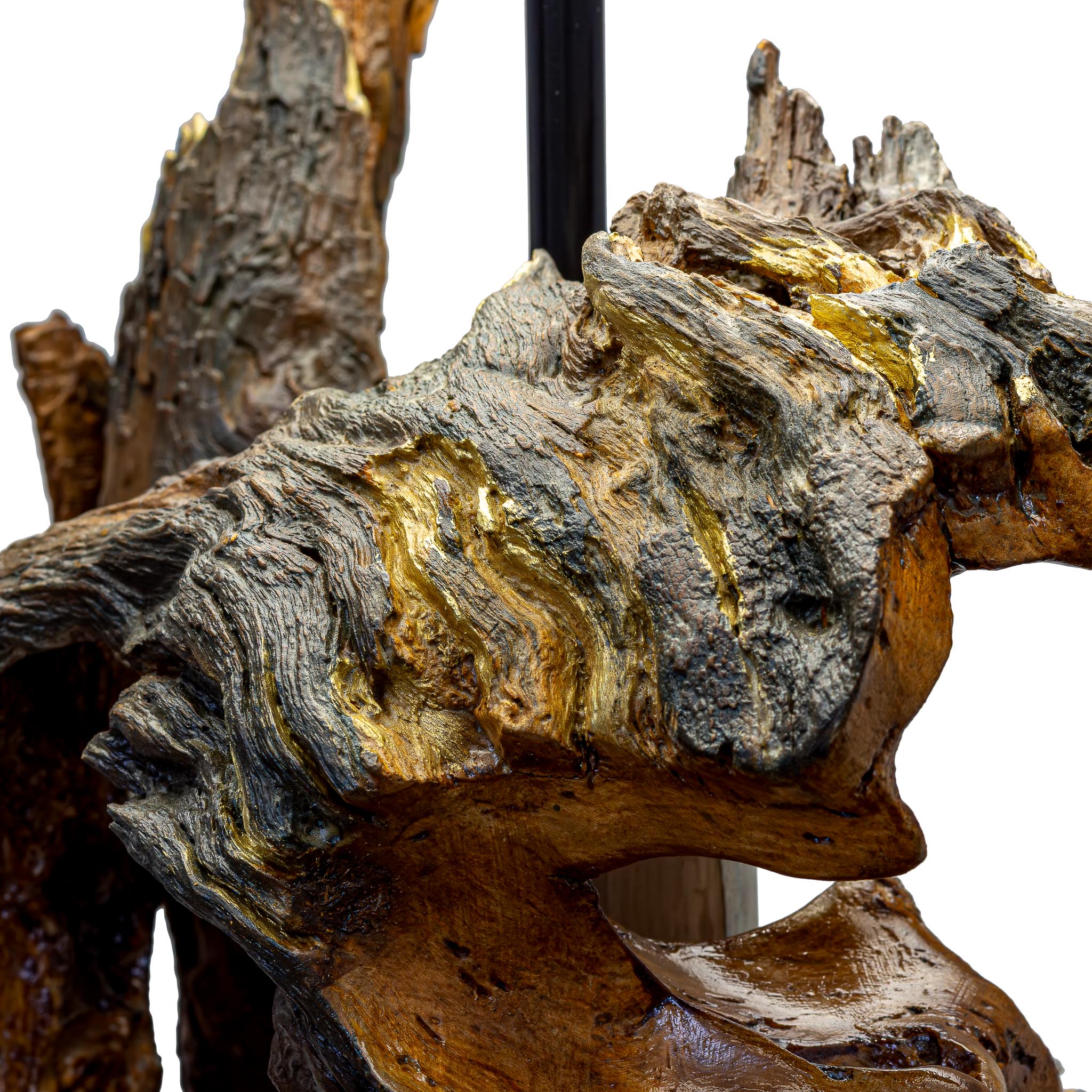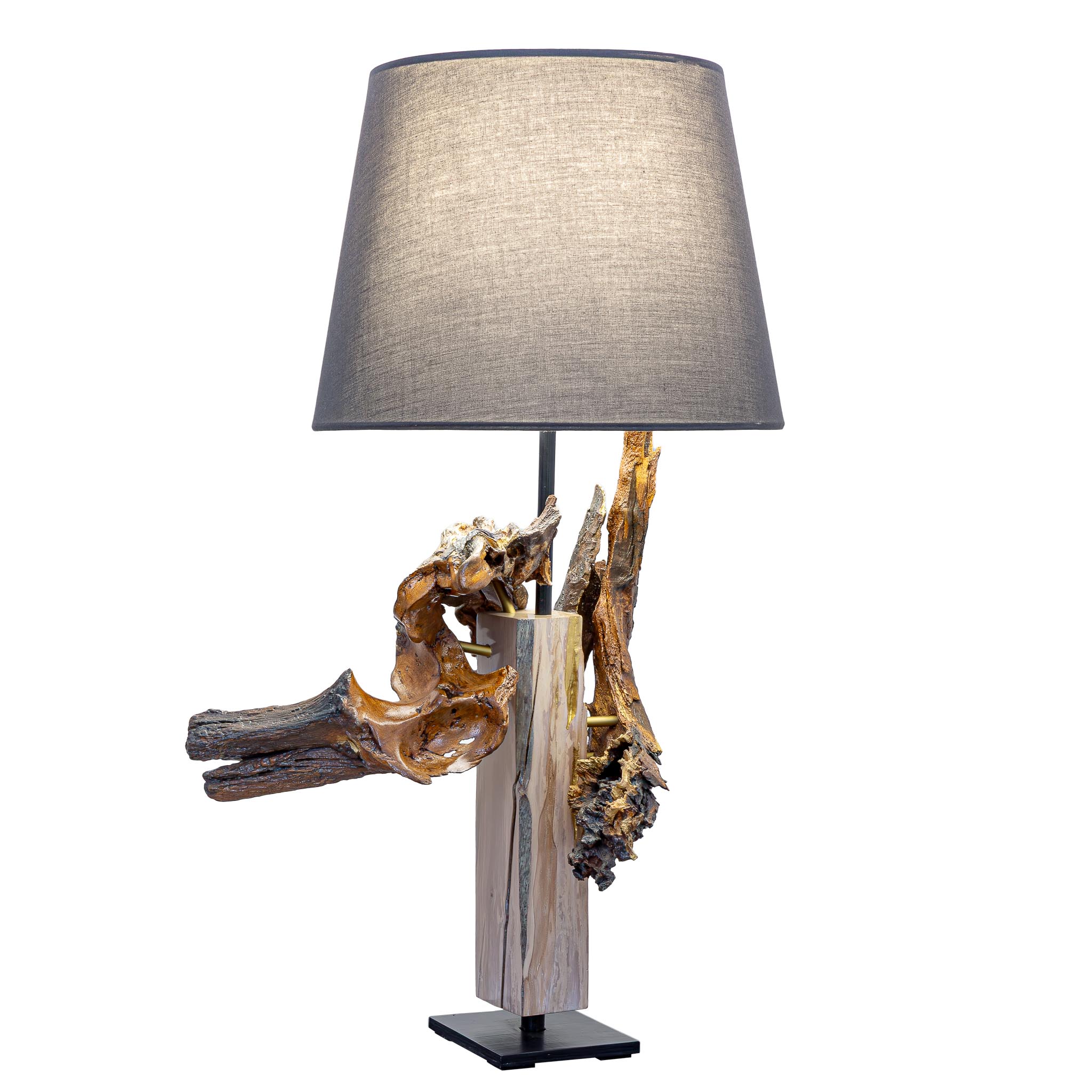 Lempos dekoratyvinė dalis iš pušies šaknies. Postamentas pagamintas iš ąžuolo