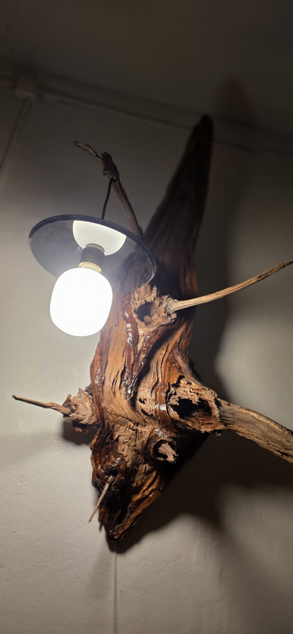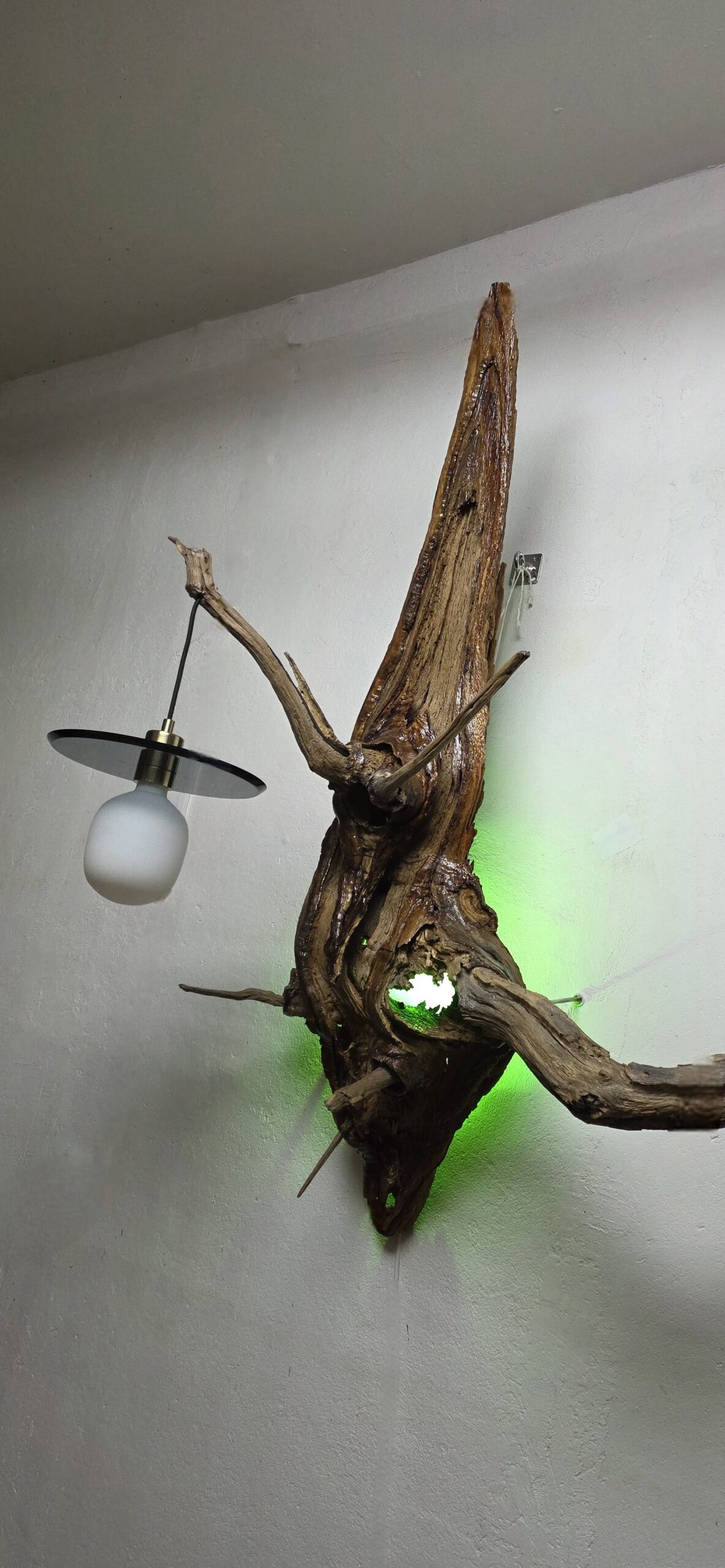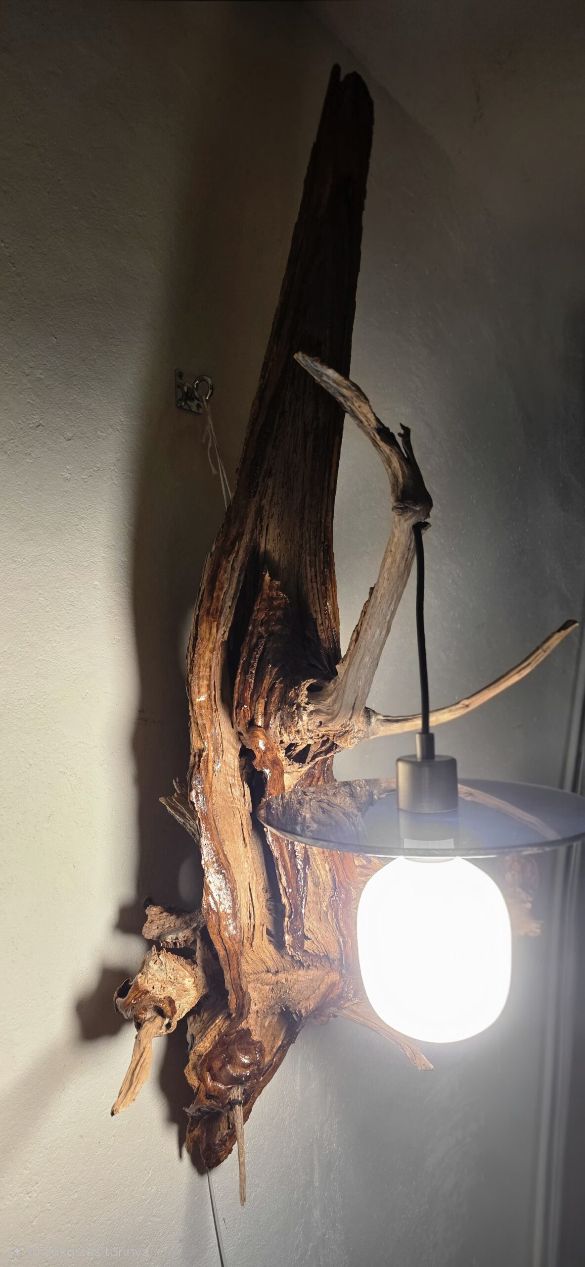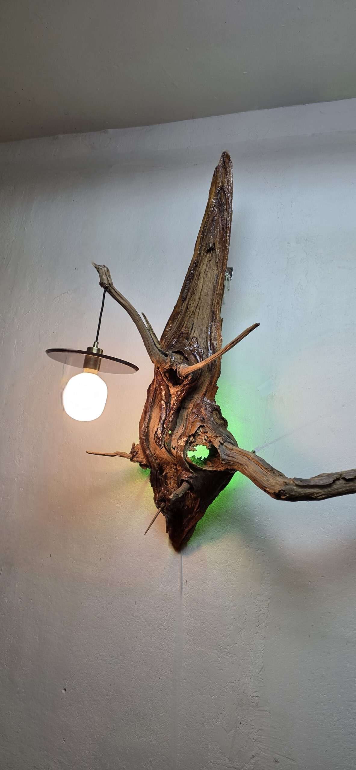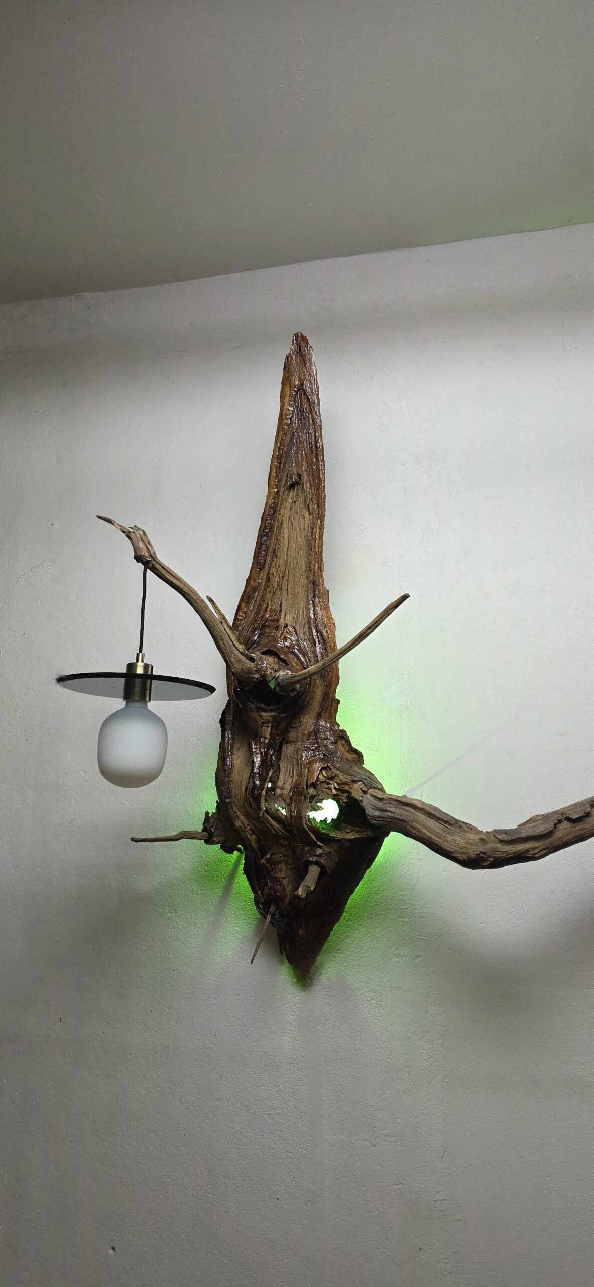 Gamtos įkvėptas interjero akcentas – sieninis šviestuvas, sukurtas iš vientiso natūralaus ąžuolo gabalo. Laiko ir oro suformuoti kontūrai bei organiška medžio tekstūra atsiskleidžia šviesai slystant paviršiumi, išryškindami kiekvieną įtrūkimą, šaką ir natūralią liniją.