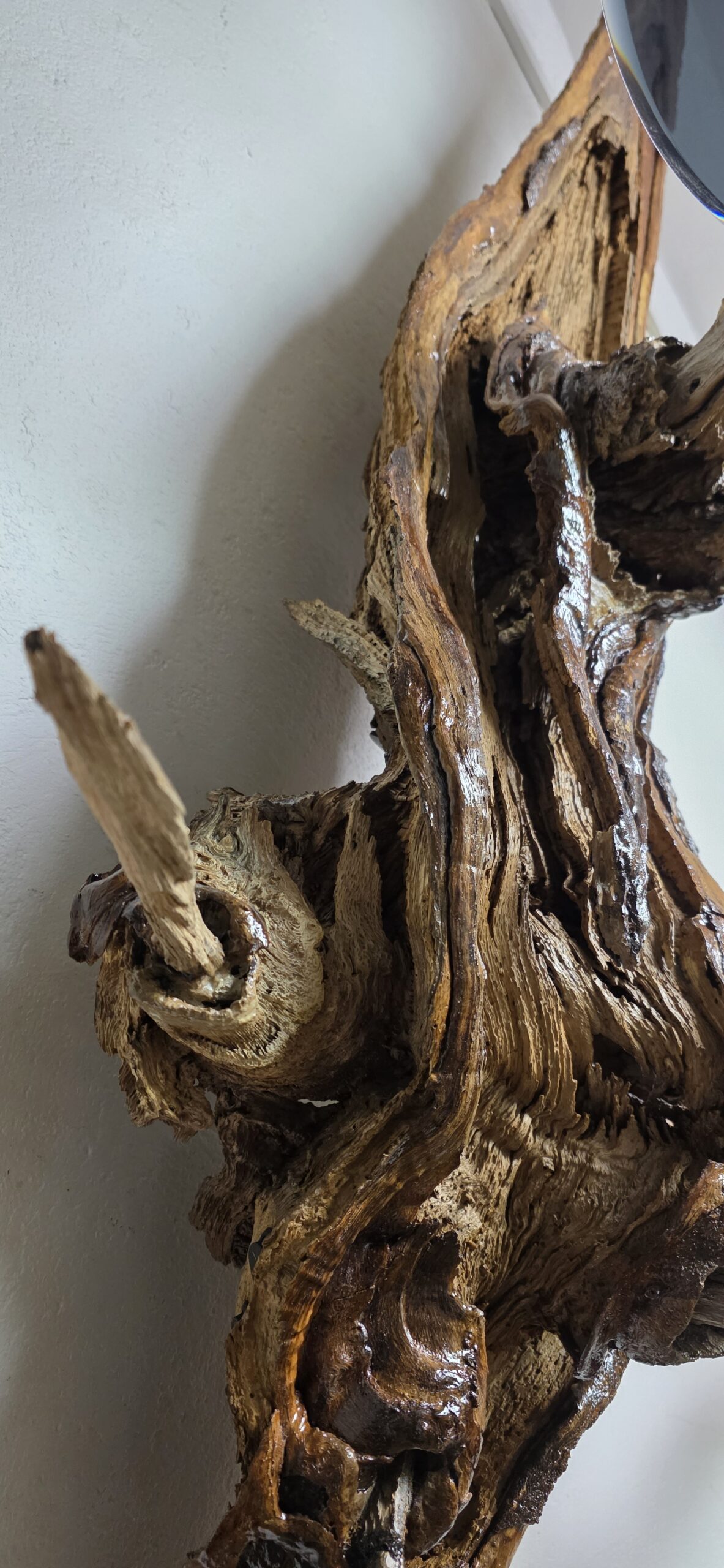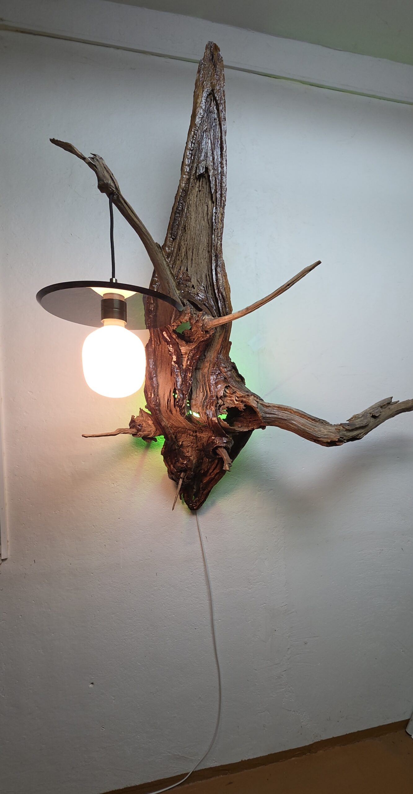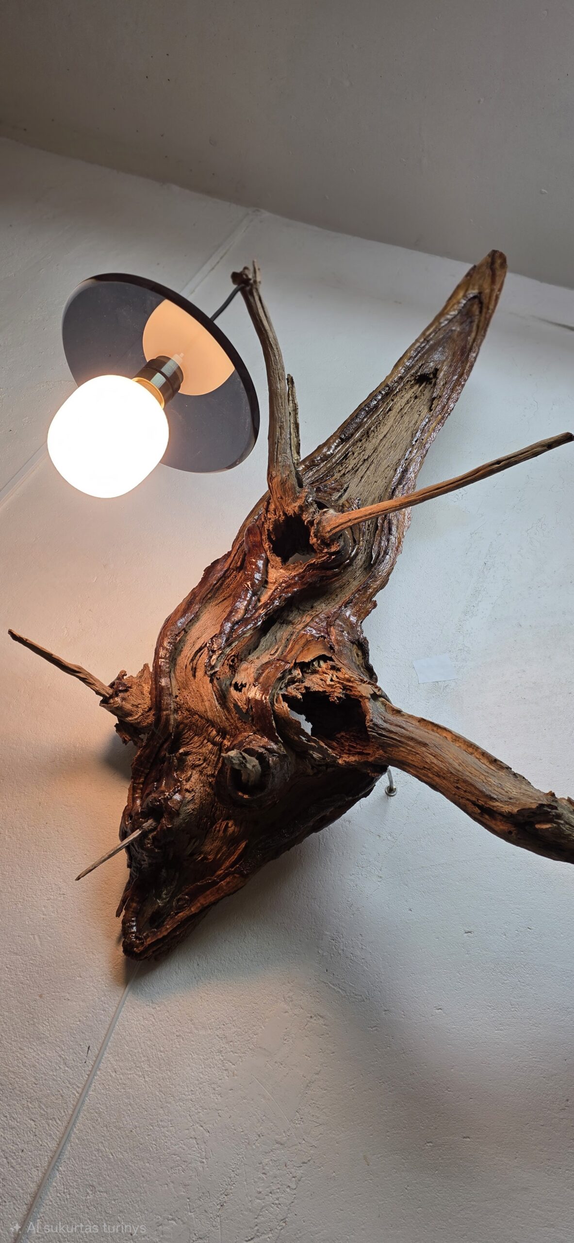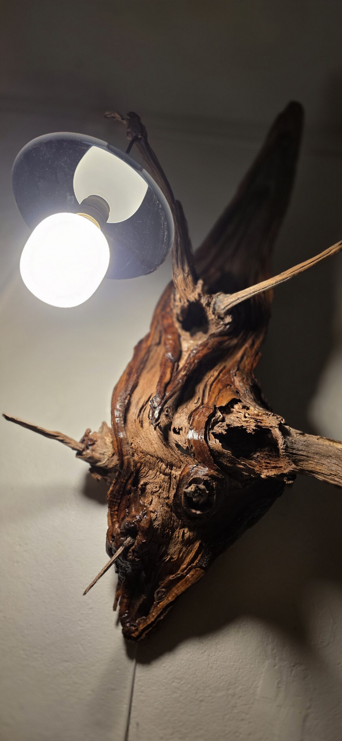 Gamtos įkvėptas interjero akcentas – sieninis šviestuvas, sukurtas iš vientiso natūralaus ąžuolo gabalo. Laiko ir oro suformuoti kontūrai bei organiška medžio tekstūra atsiskleidžia šviesai slystant paviršiumi, išryškindami kiekvieną įtrūkimą, šaką ir natūralią liniją.