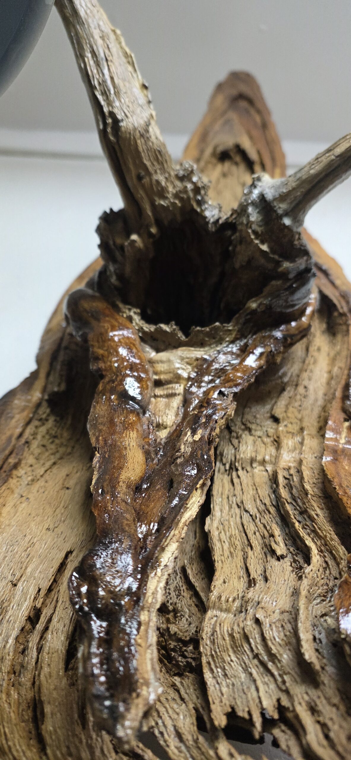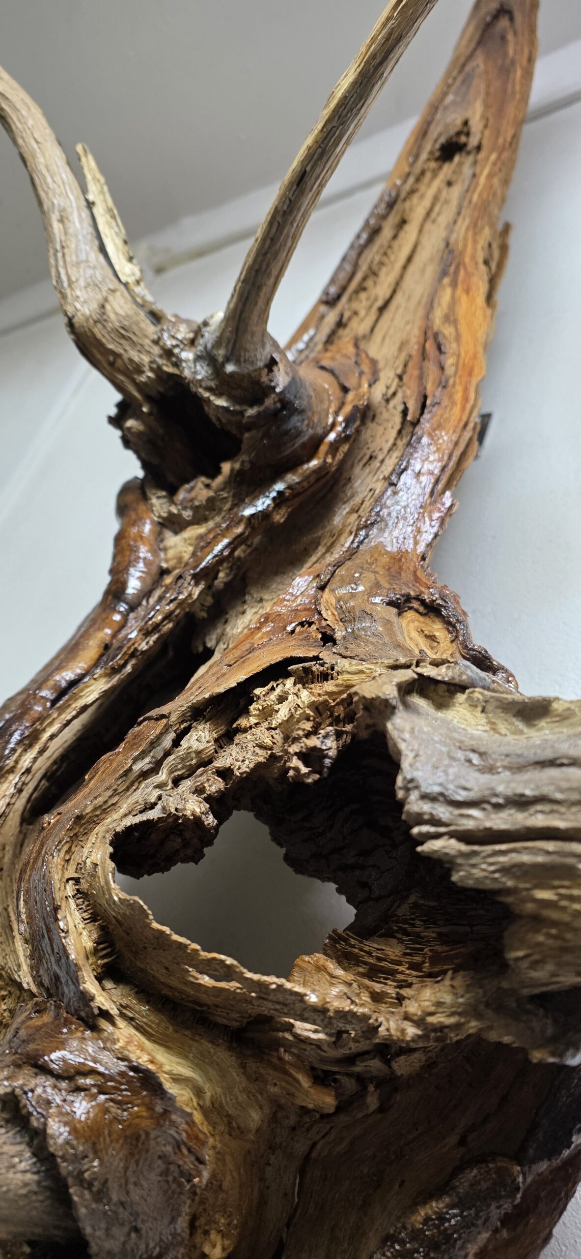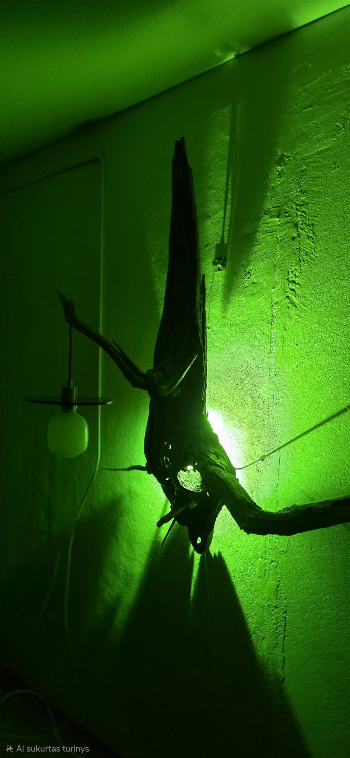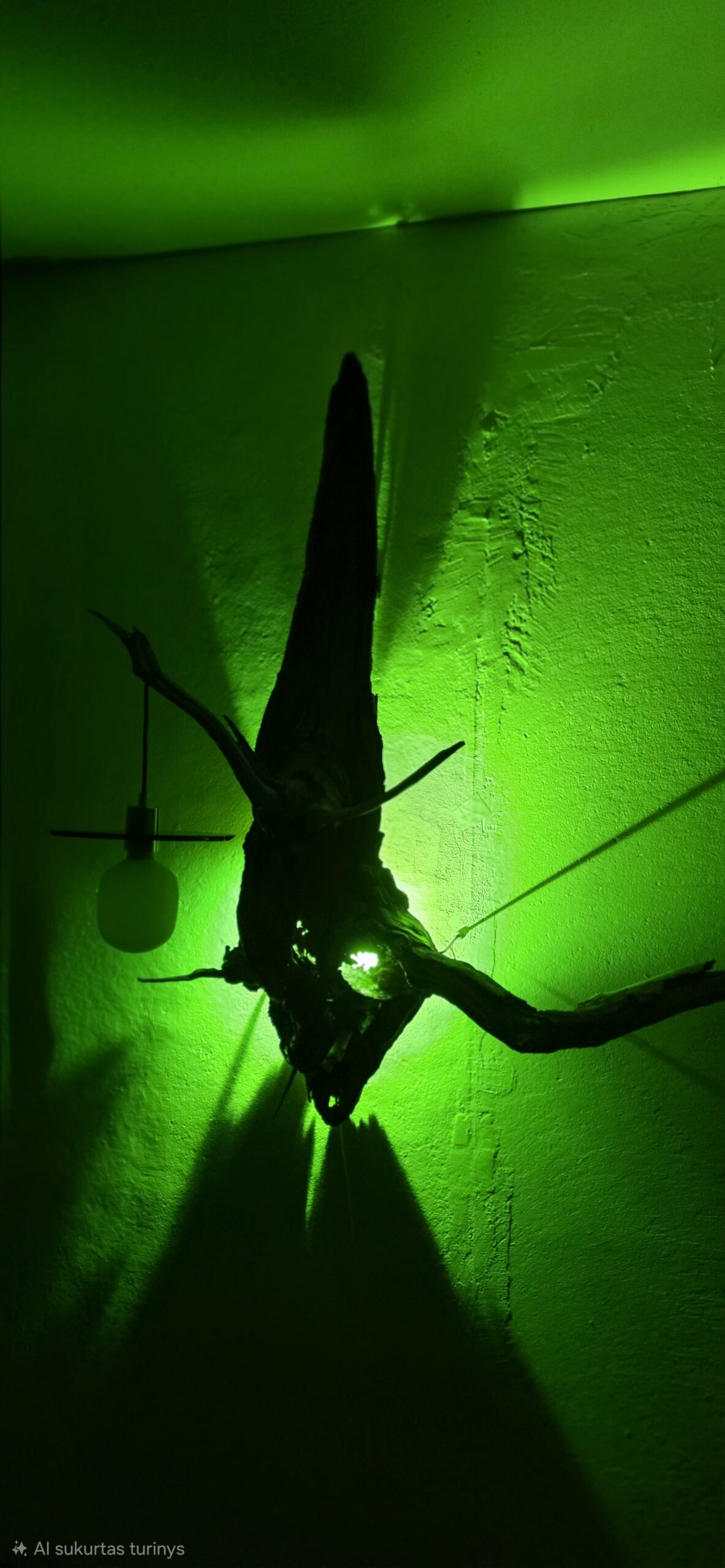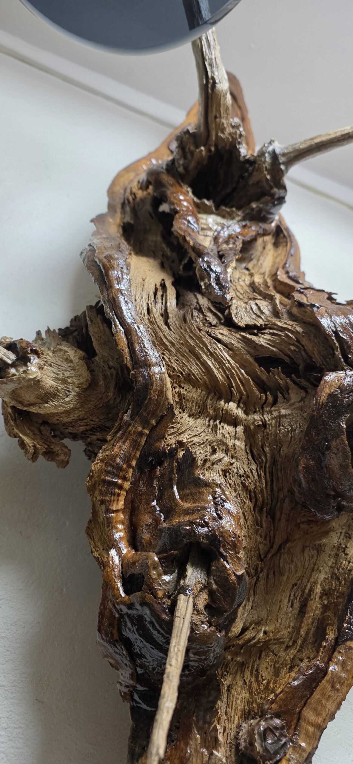 Gamtos įkvėptas interjero akcentas – sieninis šviestuvas, sukurtas iš vientiso natūralaus ąžuolo gabalo. Laiko ir oro suformuoti kontūrai bei organiška medžio tekstūra atsiskleidžia šviesai slystant paviršiumi, išryškindami kiekvieną įtrūkimą, šaką ir natūralią liniją.