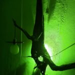 Pagrindinė LED lemputė pakabinta ant pinto, audiniu aptraukto laido – tai subtili nuoroda į senąsias amatų tradicijas, kontrastuojanti su šiuolaikine apšvietimo technologija. Kitoje kompozicijos pusėje integruoti du baldiniai šviestuvai, nukreipti į sieną ir kuriantys foninį šviesos aureolės efektą. Naudojami žali filtrai gali būti lengvai keičiami, todėl šviestuvas leidžia keisti nuotaiką ir spalvinę atmosferą pagal erdvę ar laiką.