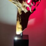 Ši skulptūrą gali atlikti šviestuvo ar toršero vaidmenį. Ant pjedestalo įmontuotas LED